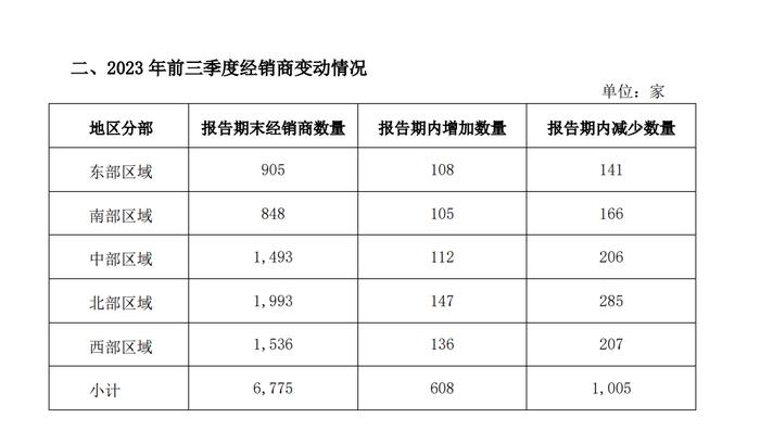 除年轻化的营销活动,海天味业近年来十分重视经销商优化。截至今年9月末,海天味业有6775家经销商。今年前三季度新增608家经销商、减少1005家经销商,五大地区经销商数量均有所下滑。