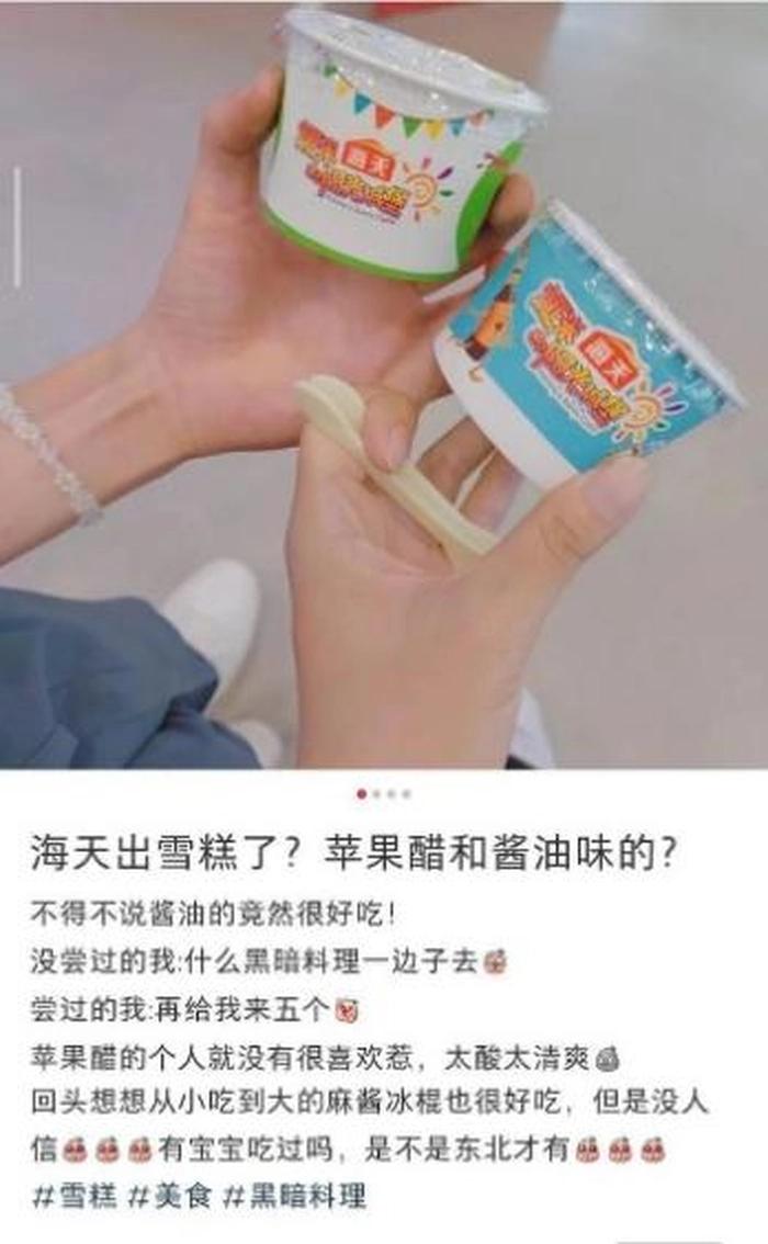 该次海天味业的冰淇淋跨界产品也并非首次,据海天味业官方微博显示,海天味业曾在2021年就已透露“海天冰淇淋”的设想。去年推出了苹果醋口味、酱油口味冰淇淋。