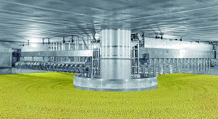 酱油酿造中,制曲是决定风味的关键工序。海天味业工程项目团队经过多年研发和摸索,2013年成功研制出第一台圆盘,并将圆盘直径做到20米,达到行业领先水平,解决了行业“卡脖子”技术难题。目前,海天味业一个圆盘单次就可以投料制曲约70吨,而在以前,这要几十个曲池才能做到。这一技术成果,不仅推动了调味品行业发展,也造福了整个酿造行业。