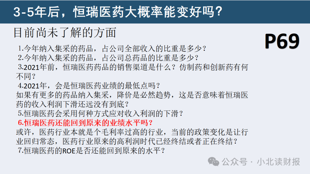 下图是小北在直播解读恒瑞2022年年报时的PPT,当时的考虑是3-5年后,恒瑞医药大概率能变好吗?