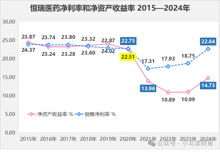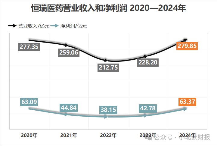 2024年主要由于两笔海外授权贡献的收入,恒瑞医药的收入利润都回到了2020年的水平,甚至较2020年还略有增长。