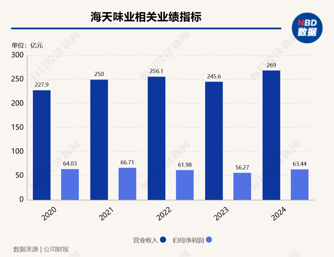 近期发布的年报显示,海天味业(SH603288,股价39.30元,市值2185亿元)2024年实现归母净利润63.44亿元,同比增长12.75%。这样的业绩来之不易。要知道,海天味业上次年度净利润两位数增长,要追溯到2020年。