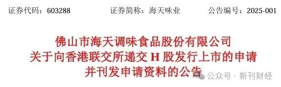 海天味业(603288.SH)于2025年5月23日发布公告,宣布其H股发行已通过港交所上市聆讯,并披露了聆讯后资料集的查询链接。