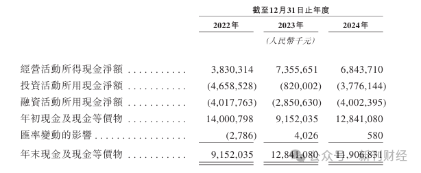 在营收和归母净利润双双实现增长的同时,海天味业2024年度经营活动现金流净额同比下降6.97%至68.43亿元,与业绩走势呈现分化态势。值得注意的是,公司投资活动和融资活动现金流持续呈现净流出状态,反映出业务扩张带来的资金压力。