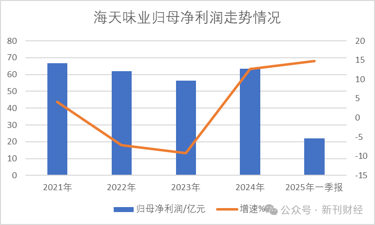 财报数据显示,海天味业2024年业绩呈现恢复性增长,实现营收269.01亿元,同比增长9.5%;归母净利润63.44亿元,同比增长12.8%大于营收增速。值得注意的是,归母净利润这一增长是其在2022-2023年连续下滑后的反弹,实际盈利水平仍未超过2021年峰值。