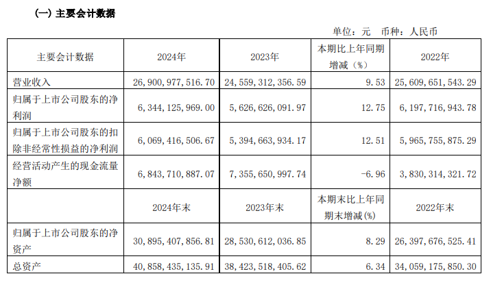 从财务表现看,海天味业营业收入与净利润均实现增长。2022年~2024年,海天味业营收从256.10亿元增至269.01亿元,净利润从61.98亿元升至63.44亿元;2025年延续增长势头,海天味业一季度营收为83.15亿元,同比增长8.08%;归母净利润为22.02亿元,同比增长14.77%;扣非净利润为21.47亿元,同比增长15.42%。