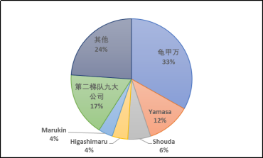 目前日本酱油已完成行业整合,其集中度相对较高(CR3约51%),龟甲万作为龙一,市占率达33%。