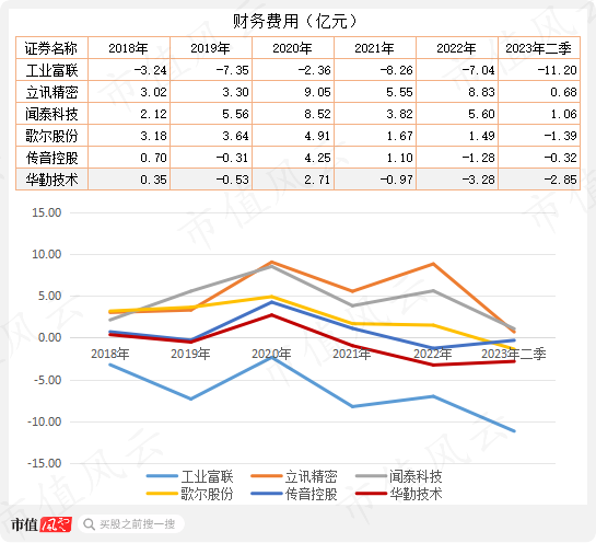 有息负债必然涉及财务费用,财务费用由高到低依次是立讯精密、闻泰科技、歌尔股份。