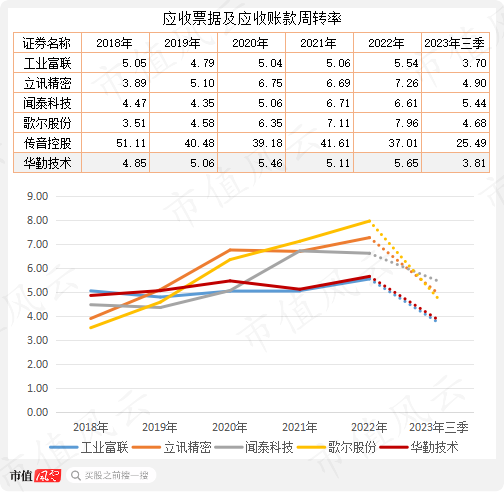 上文提到华勤技术应收票据及应收账款周转率低,主要原因是其应收账款规模大。