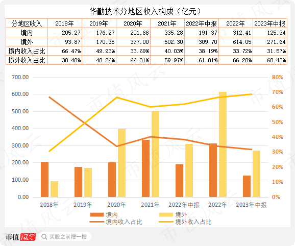 需要指出的是,华勤技术的境外收入占比从2018年的30.4%上升到2023年的68.4%。境外收入规模高,而汇率变动则必然产生汇兑损益。