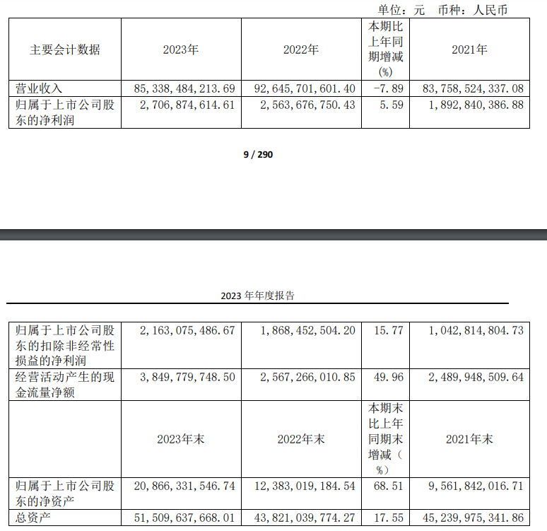 2023年,华勤技术实现营业收入853.38亿元,同比降7.89%;实现归属于上市公司股东的净利润27.07亿元,同比增长5.59%。