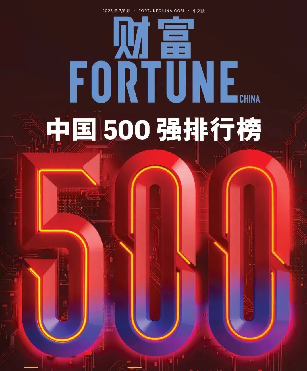 《财富》中国500强榜单自2010年起由《财富》杂志独立编制,采用与《财富》世界500强完全一致的制榜方法,同时覆盖上市及非上市公司,被公认为观察中国大企业综合实力与产业变迁的“晴雨表”。2025年《财富》中国500强合计实现营业收入14.2万亿美元,净利润7,564亿美元,年营收门槛约36.2亿美元。榜单显示,2024年中国的GDP总量达到18.75万亿美元,今年榜单中500家公司的收入总和约为中国当年GDP的四分之三。