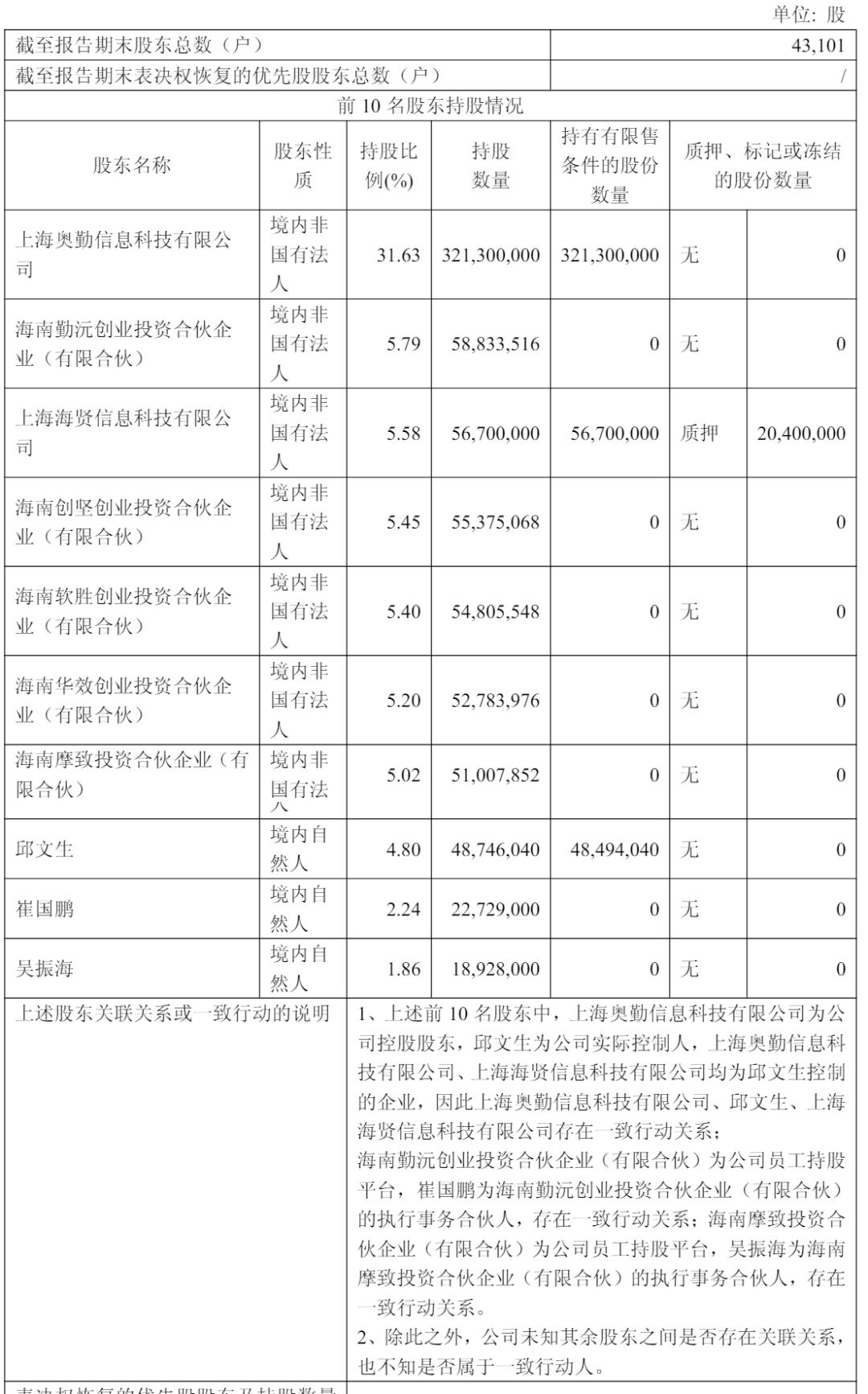 IPO前,邱文生为公司48,746,040股股份的直接实益拥有人,通过上海奥勤控制公司321,300,000股股份,并通过上海海贤间接控制公司56,700,000股股份。上海奥勤及上海海贤均由邱文生最终控制。