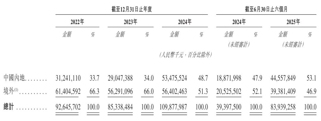 从区域来看,华勤技术2025年上半年来自中国内地的收入为445.58亿元,占比为53.1%;来自境外的收入为393.81亿元,占比为46.9%。