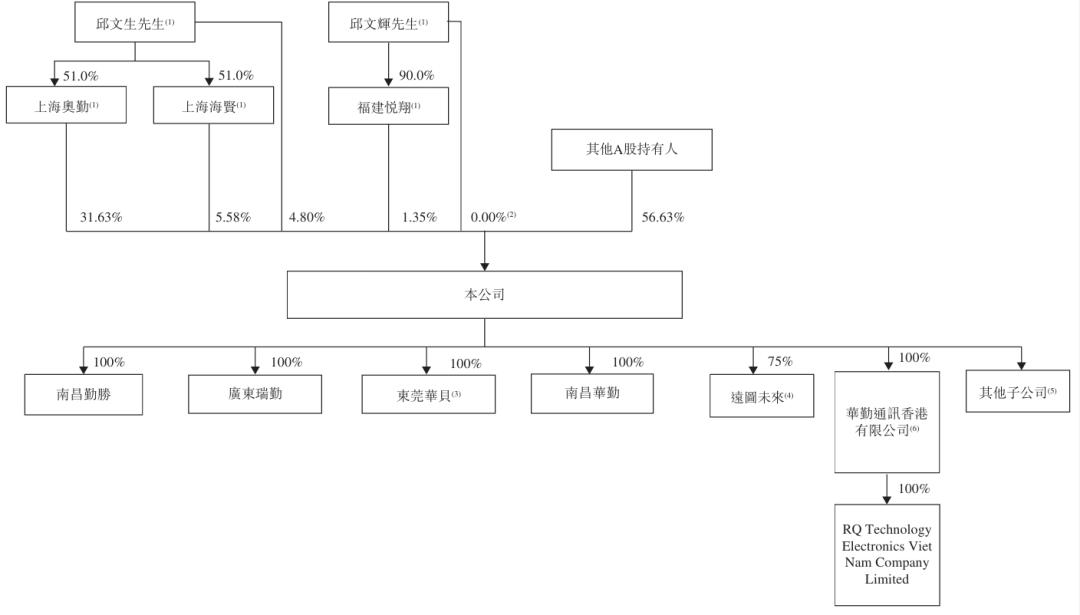 邱文生、上海奥勤、上海海贤、邱文辉及福建悦翔合计可行使附属于440,515,043股股份及约占公司已发行股份43.37%的表决权,并组成华勤技术的控股股东集团。