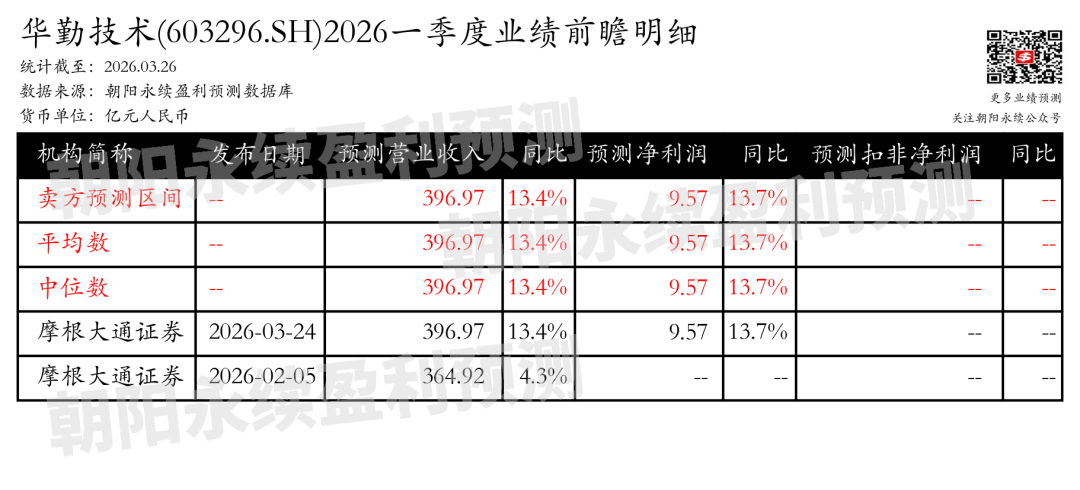 截至2026年03月26日,根据朝阳永续季度业绩前瞻数据: