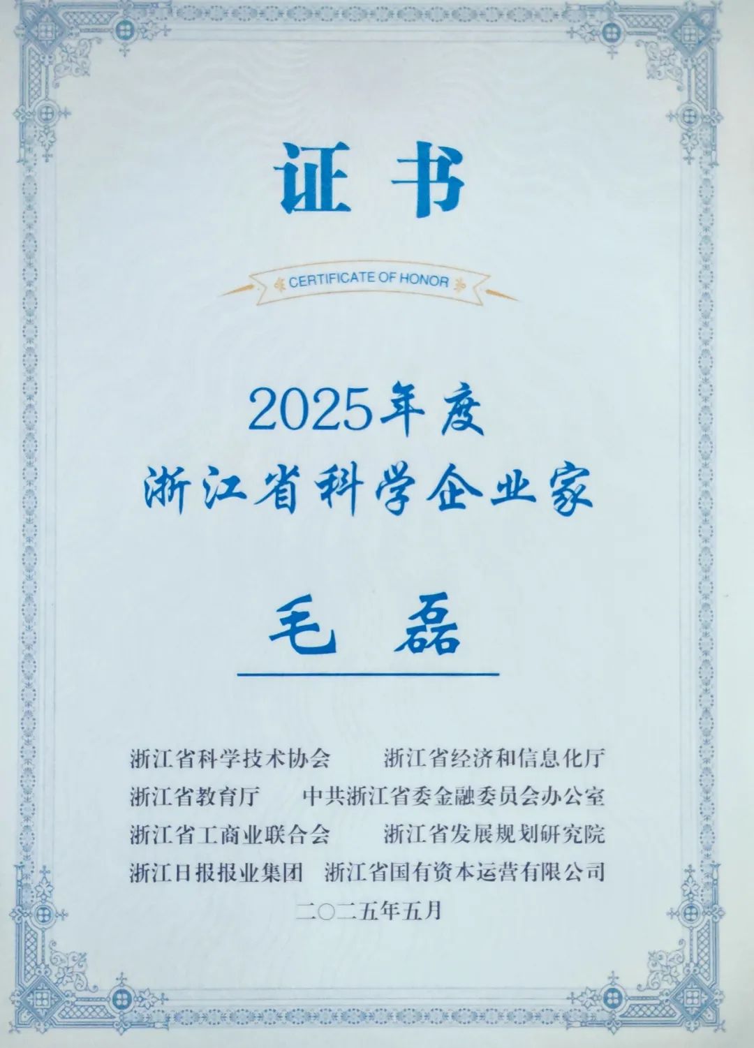 公司联席董事长、总经理毛磊凭借其在显微科学仪器领域的卓越贡献与创新实践,荣获“2025年浙江省科学企业家”称号,全省10位入选!这一荣誉不仅是是对毛磊个人科技报国情怀的肯定,更是对永新光学坚持自主创新、服务国家战略的高度认可。