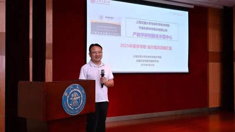 生命科学技术学院仪器共享与技术服务平台主任许杰进行产教学研创融合示范中心建设阶段性汇报,进一步展示了双方合作在推动科研实践中的积极作用。
