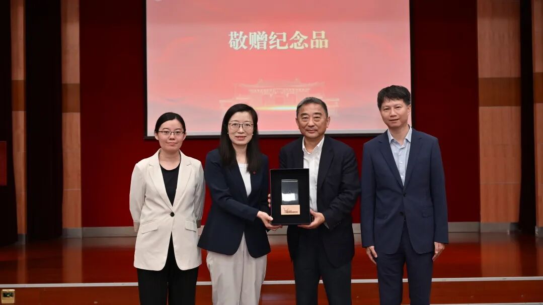 胡薇薇、张雁代表学校学院向曹其东赠送了来自深海 10909 米处的马里亚纳海沟最深点的深渊底部沉积物样本,寓意着双方携手探索科研“未至之境”的坚定决心。