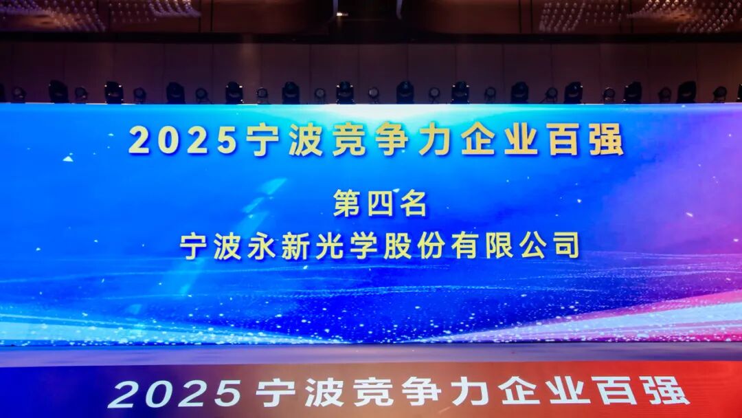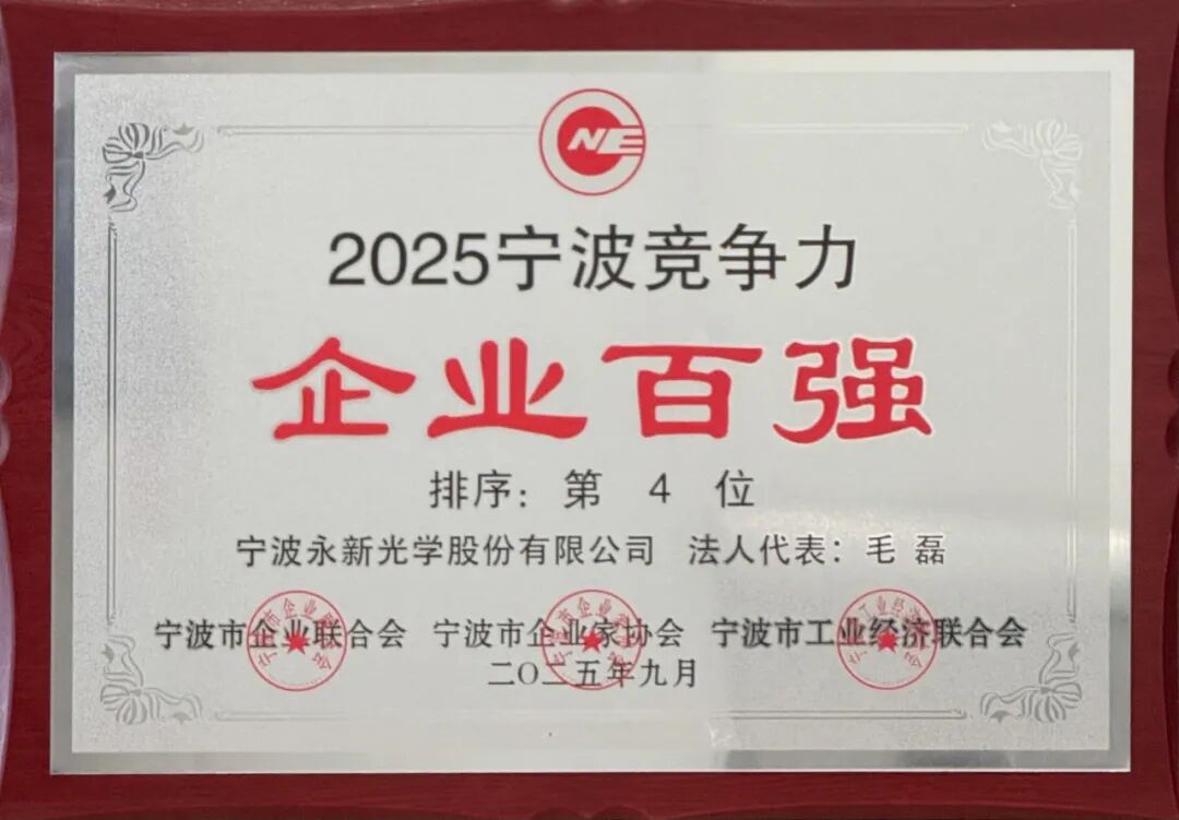 9月10日,宁波市企业联合会、宁波市企业家协会、宁波市工业经济联合会联合发布了2025年度竞争力企业百强榜单。永新光学凭借卓越的创新实力、稳健的市场表现以及显著的行业贡献,从众多优秀企业中脱颖而出,荣登百强榜第四位,充分展现了企业在光学领域的强大竞争力和品牌影响力。