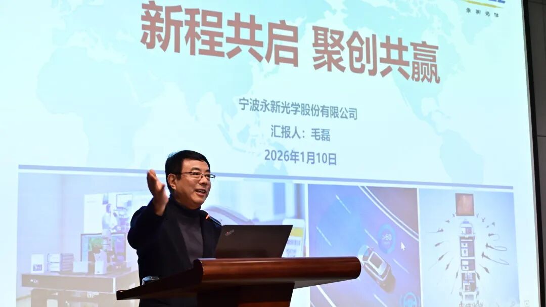 1月10日,永新光学2026年供应商工作会议在公司5楼报告厅隆重召开。本次大会以“新程共启,聚创共赢”为主题,永新光学总经理毛磊、副总经理毛昊阳、副总经理崔志英、运营副总沈文光及供应链系统的管理人员,以及来自全国各地、深耕永新光学双事业业务的供应商代表齐聚一堂,共107人出席此次会议。