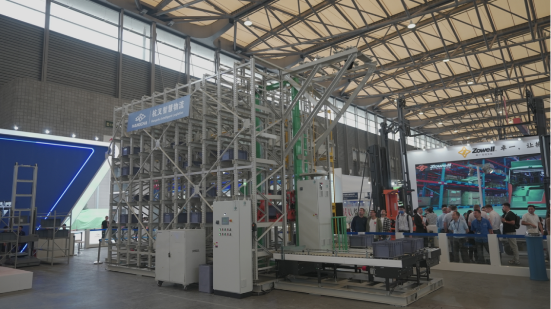 杭叉奥卡姆拉展示的是一个料箱库的解决方案,整个自动化仓库由T50料箱堆垛机、库前辊筒输送系统及料箱机器人AGV组成,同时各单机设备统一由上层WCS软件系统调度,主要为大家展示整个自动化出入库的流程。值得注意的是T50料箱堆垛机目前已经实现百分百国产化生产,成本及交期得到了有效保证。辊筒输送系统是由日本OKAMURA进口,未来也将在国内实现国产化生产。
