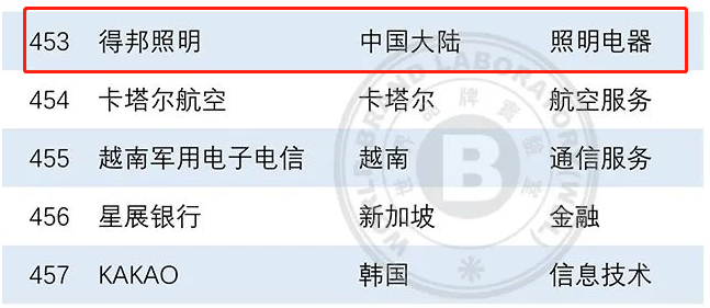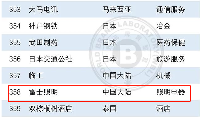 值得照明业界关注的是,雷士照明与得邦照明两家中国大陆照明企业分别以第358名与第453名入选排行榜。