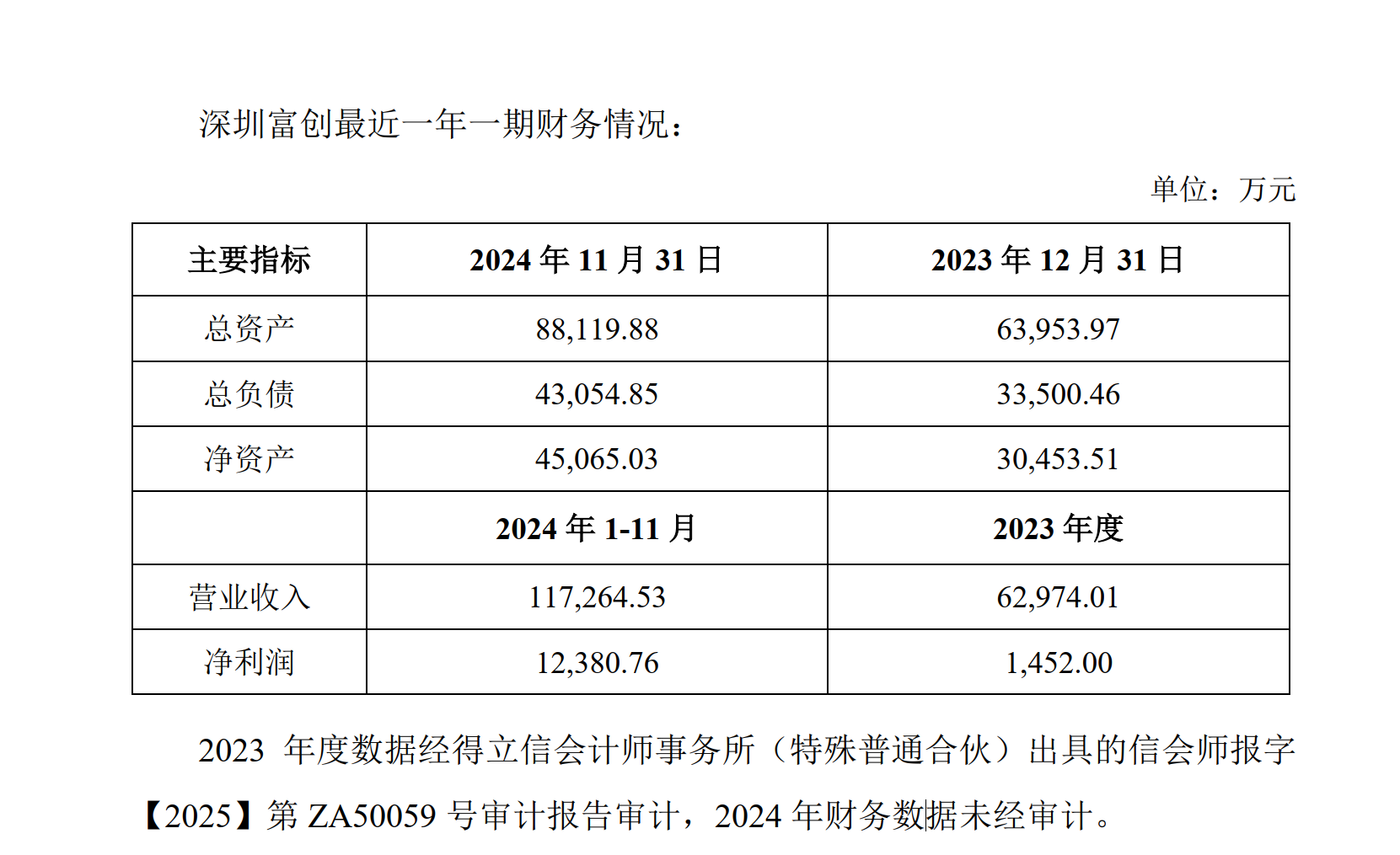 据华懋科技此前公告,截至去年11月末,富创优越的总资产约8.8亿元,净资产约4.5亿元。去年前11个月,富创优越实现营业收入约11.7亿元,实现净利润约1.2亿元。