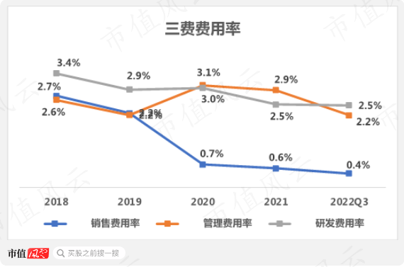 2020年起公司销售费用率已经聊胜于无,抱紧大客户开始躺平,而牧高笛销售费用率常年超过5%。另一方面,公司无自有品牌,研发费用率也较低,2022年前三季度为2.2%。