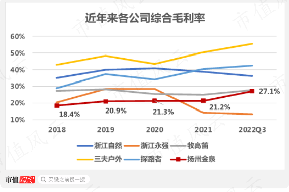 整个行业看,欧美知名品牌垄断市场,国内品牌商探路者和品牌、渠道商三夫户外生意难做,期间费用率高企,前者净利润反复横跳,最高时也不足7%,后者更是常年为负。