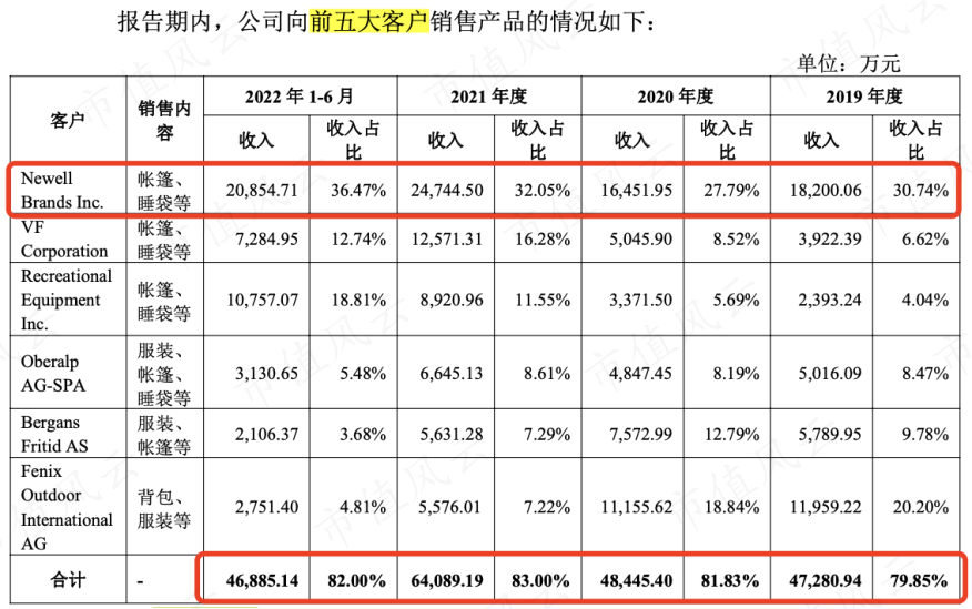 尤其对前两大客户Newell Brands Inc.和VF Corporation,合计销售金额占总营收近50%,而近期公司帐篷卖的好也是倚仗Newell Brands Inc.的订单。
