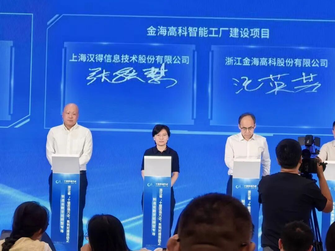 5月28日,浙江省“十链百场万企”系列对接活动制造业数字化转型专场在绍兴市柯桥区隆重举行。此次会议聚焦实体经济与数字经济深度融合,旨在推动产业链上下游协同创新,加速数字化转型解决方案与行业需求的精准匹配,赋能企业降本增效、提质升级。会上,金海高科与数字化服务商正式签约,启动企业MES(制造执行系统)项目建设,透过数字化技术赋能生产全流程,为企业迈向智能化、精细化管理注入强劲动能,开启高质量发展新篇章。