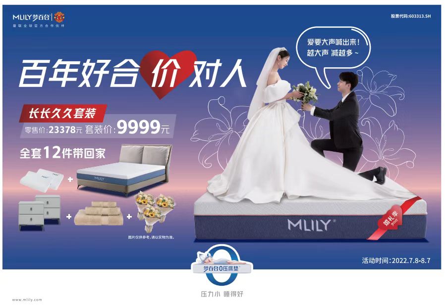 MLILY梦百合14年来潜心专研0压绵技术,一直以“提高人类的深度睡眠”为使命。每一位梦百合的合作者、支持者、消费者的陪伴让MLILY梦百合一路披荆斩棘、不畏困难,走到今天。此次新歌MV发布会,是MLILY梦百合的婚礼季宣传活动,但更是梦百合的感恩回馈活动!