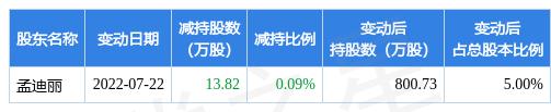 7 月 22 日超讯通信发布公告《603322:超讯通信:关于股东权益变动的提示公告》,其股东孟迪丽于 2022 年 7 月 22 日合计减持 13.82 万股,占公司目前总股本的 0.0863%,变动期间该股股价上涨 0.06%,截止 7 月 22 日收盘报 18.01 元。