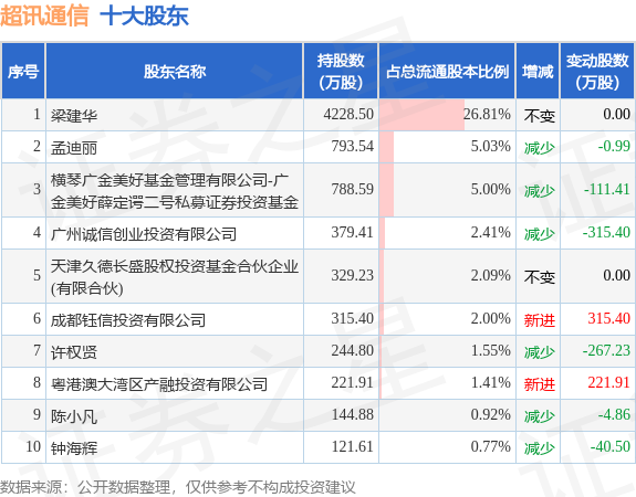 根据超讯通信2023年一季报公布的十大股东详情如下: