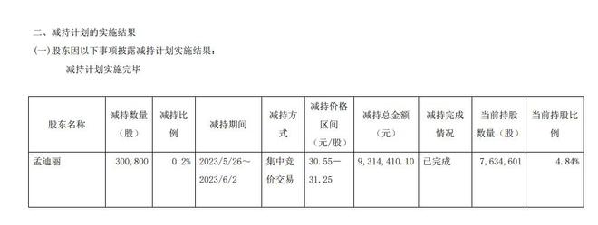 具体来看,上述误操作减持前,孟迪丽持有公司股份7945301股,占公司总股本的5.04%。根据孟迪丽向公司出具的《股票减持情况说明》,因其误操作股票账户,导致在未披露减持股份计划的情况下,于2023年2月27日通过集中竞价交易方式减持持有的公司股份9900股,占公司总股本的0.01%,本次减持后,孟迪丽持有公司股份7935401股,占公司总股本的5.03%。