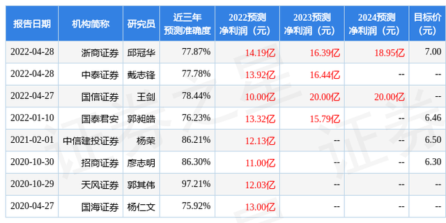 以下是详细的盈利预测信息:
