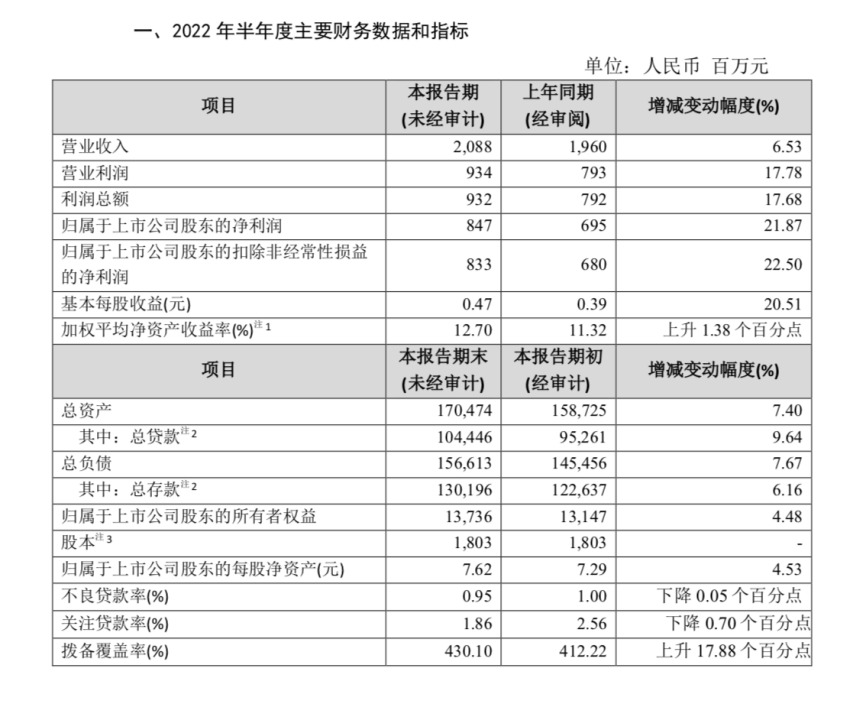 7月5日,苏农银行(603323)也紧跟披露了2022年半年度业绩快报公告。