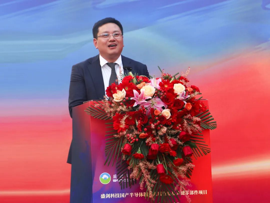 作为重要的客户代表,北方华创集团副总裁、华丞电子董事长刘利坚在致辞中对盛剑科技的投产表示祝贺,并期待未来深化双方的合作,共谋产业发展。