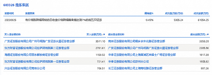 我乐家居9月25日跌停,龙虎榜数据显示,上榜营业部席位全天成交1.93亿元,占当日总成交金额比例为31.66%。其中,买入金额为8880.15万元,卖出金额为1.04亿元,合计净卖出1569.38万元。