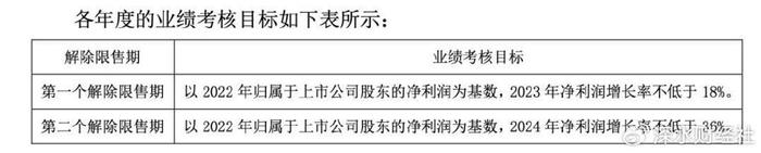 根据此前激励计划发布业绩考核的目标为,以2022年归母净利润为基数,2023年、2024年的增长率分别不能低于18%、36%。