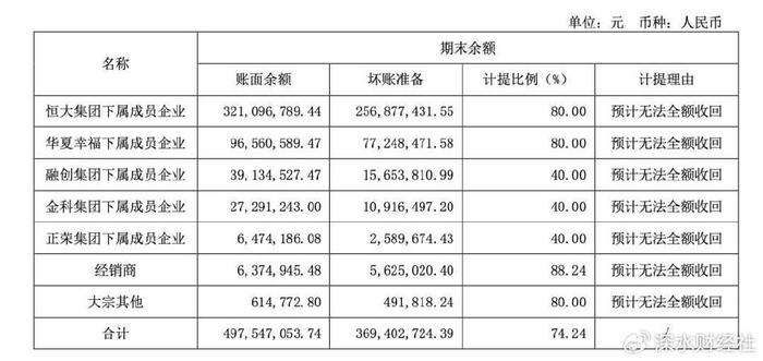 与此同时,我乐家居背后还埋着坏账之雷。据半年报,我乐家居期末因出票人未履约,坏账准备计提约3.694亿元。其中,应收恒大集团下属成员企业、华夏幸福下属成员企业、融创集团下属成员企业、金科地产下属成员企业、正荣集团下属成员企业、中南集团下属成员企业的货款,由于本期存在商业承兑汇票逾期未兑付情况,预计无法全额收回。