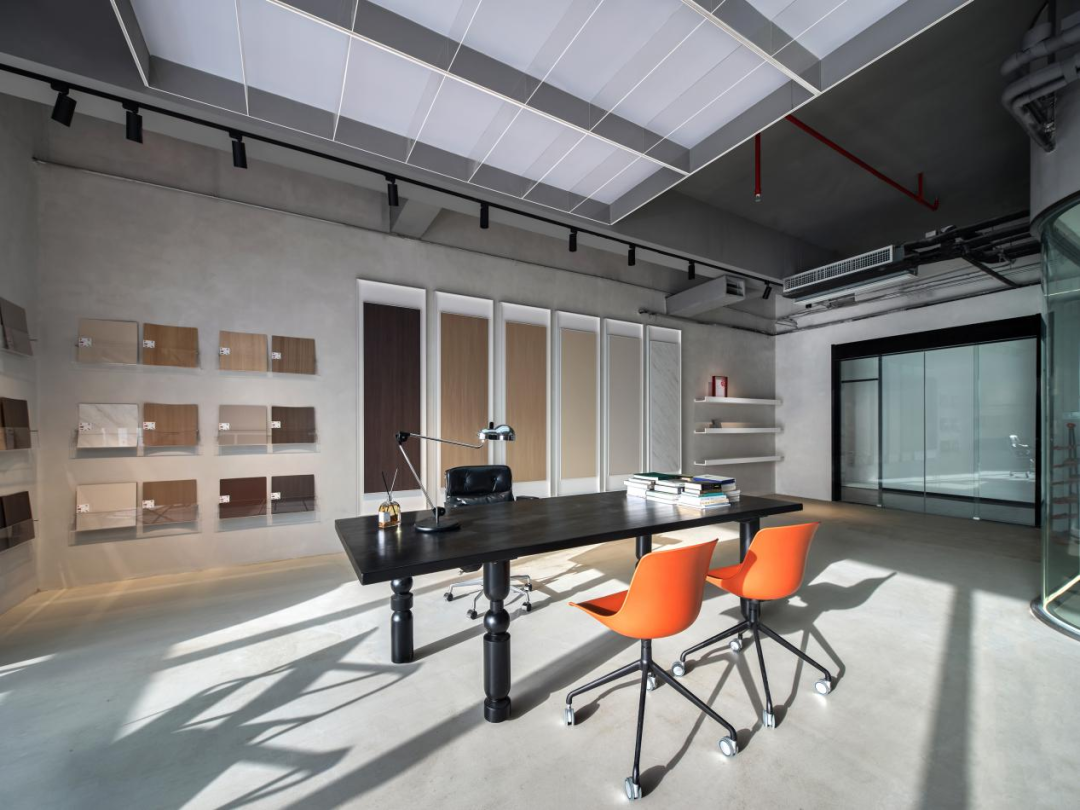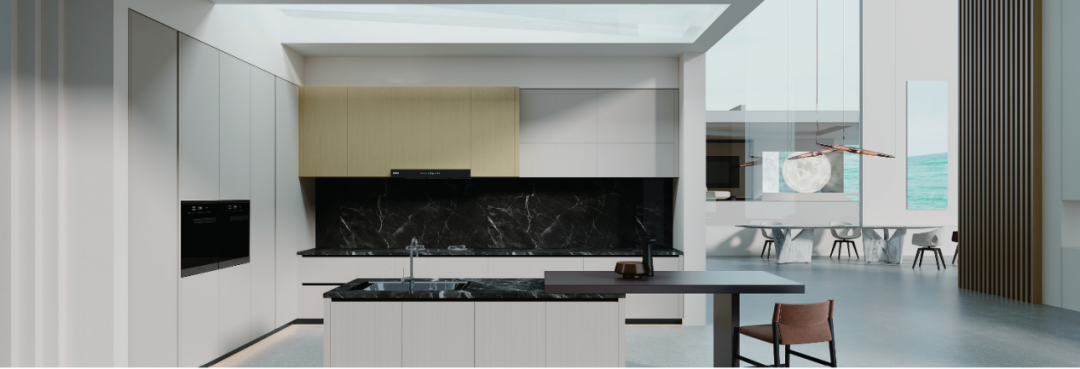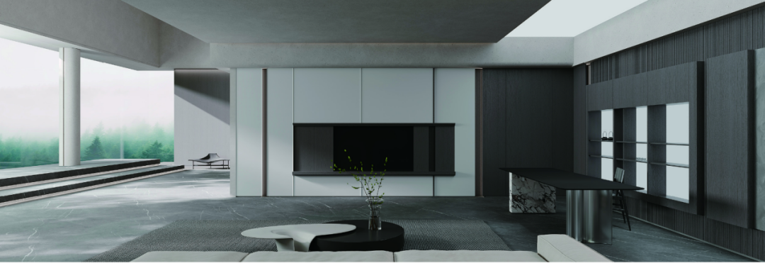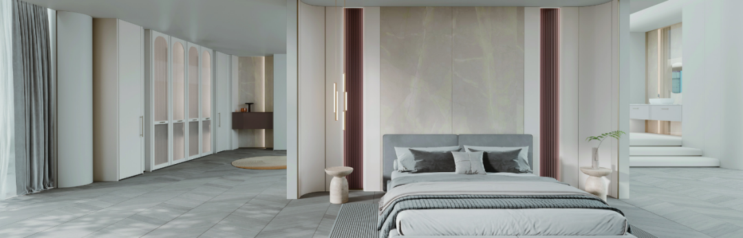 运用服装设计理念中的自然与舒适,色彩穿插与碰撞的时尚视觉层次感,将元素解构成欣尚系列的产品细节之处。包括:花色材质、门型设计、极简拉手、造型护墙等细致的解构设计语言,创造出独特的核心卖点。