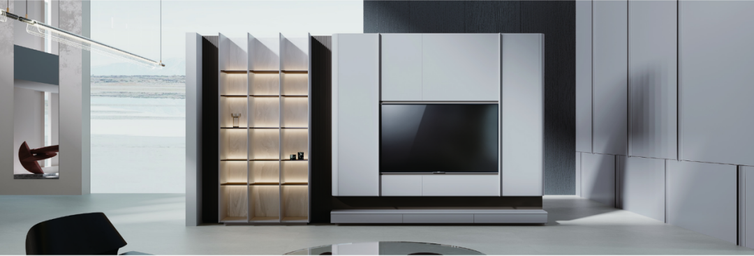 轻奢是一种潮流,也是一种家居风尚,这次将轻奢带入材质中,用同色一体隐拉门和韵律护墙,将轻奢概念重新定义成普兰达系列产品。轻奢感材质、韵律护墙、天然木皮、弧形侧封板、弧形护墙、波浪护墙等多种融合才是真正的轻奢当代设计风格。