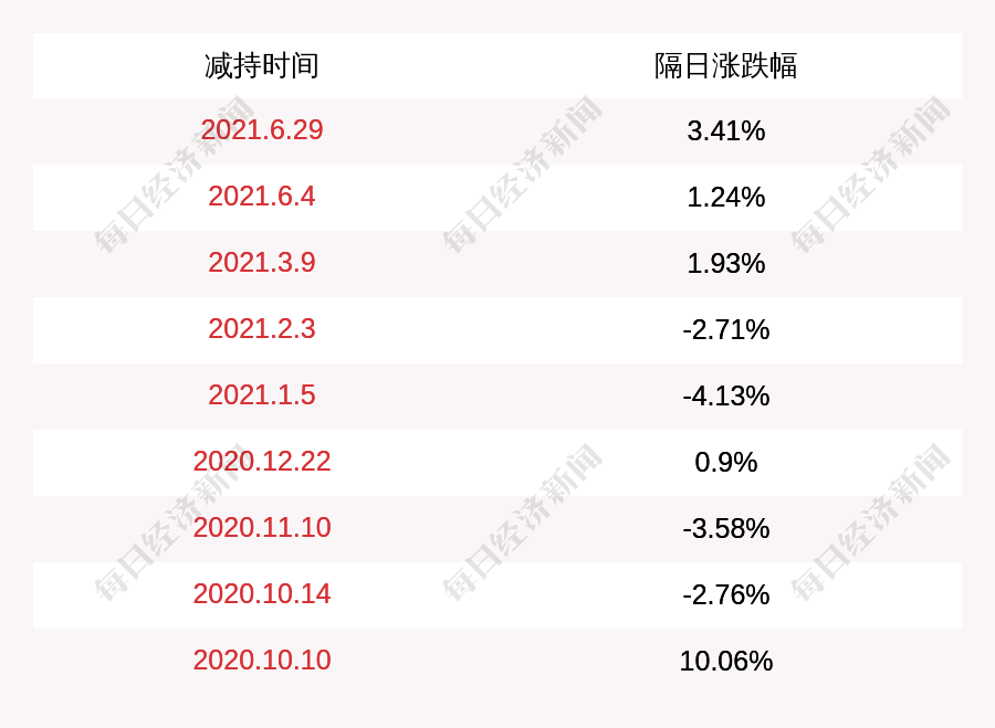 2.上海天洋上次发布减持公告是2021年06月29日,第二个交易日上涨3.41%,上海天洋近一年共发布10次减持类公告。