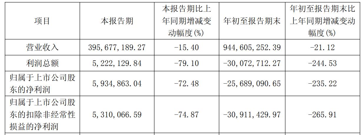 报告显示,尚纬股份前三季度实现营收9.45亿元,同比下降21.12%;归母净利润为-2568.91万元,同比下降235.22%;扣非归母净利润为-3091.14万元,同比下降265.91%。