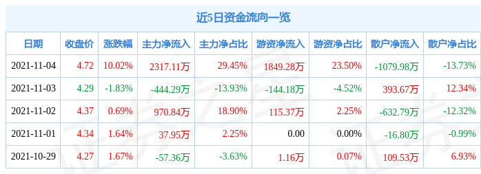 资金流向数据方面,当日主力资金净流入2317.11万元,游资资金净流入1849.28万元,散户资金净流出1079.98万元。近5日资金流向一览见下表: