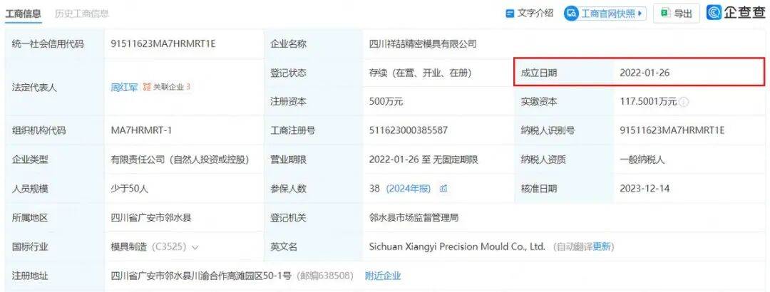 报告期内,至信股份向供应商四川祥喆精密模具有限公司(下称“祥喆模具”)主要采购工装模具,双方从2021年开始合作。但是从企查查来看,祥喆模具成立于2022年1月26日,有四名自然人股东周红军、周选文、涂良俊、周选香,持股比例分别为45.20%、32.88%、10.96%、10.96%。股东周红军同时还控制一家模具公司,名称为重庆友邦精密模具有限公司,成立于2011年。不知至信股份与祥喆模具的合作时间是否含盖了与祥喆模具关联方的合作年限。