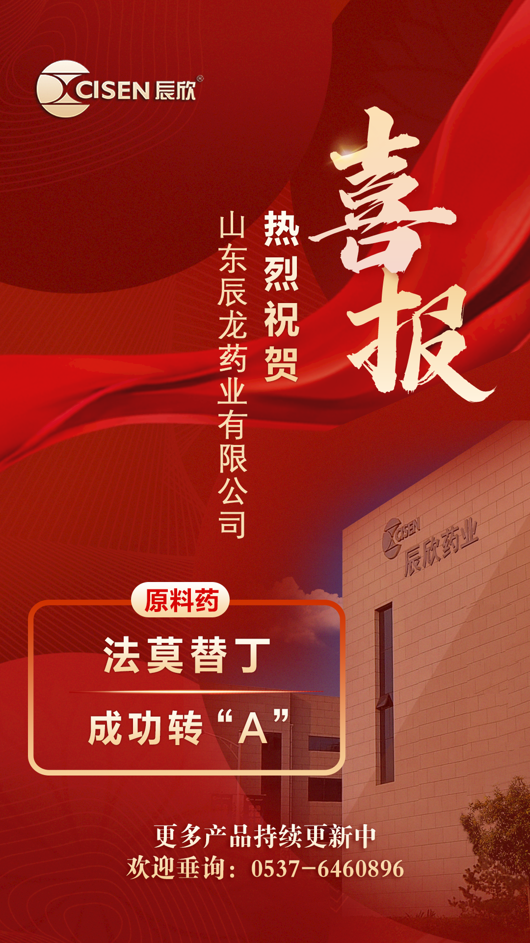 新闻速递丨辰欣药业子公司法莫替丁原料药CDE登记状态成功转“A”
