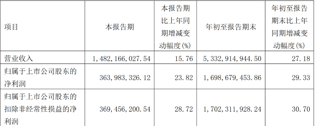 数据显示,2021年前三季度,今世缘实现营业收入接近53.33亿元,同比增幅在27%左右;归属于上市公司股东的净利润约为16.99亿元,同比增长29%以上。